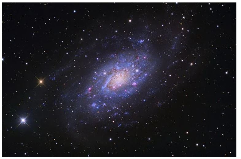 NGC 2403(콜드웰 7) - NGC 2403은 약 800만 광년 떨어져 있는 중간나선은하이다. 이 은하는 겉보기 등급이 8.9로 18세기 독일 태생의 영국 천문학자 프레데릭 윌리엄 허셜이 처음 발견 했습니다. NGC 2403의 북쪽 나선팔은 역시 기린자리Camelopardalis 별자리에 위치한 외부 은하의 성운 지역인 NGC 2404와 연결되어 있습니다. 이 은하는 큰곰자리에 위치한 M81과 M82를 포함한 은하군인 M81 그룹의 외곽에 속합니다. 이 그룹은 Virgo Supercluster 내에 있습니다. GC 2403은 알려진 세페이드 변광성을 포함하는 우리 지역그룹을 넘어서 발견된 최초의 은하입니다. 지난세기에 은하계에서 두 개의 초신성인 SN 1954J와 SN 2004dj가 보고되었습니다