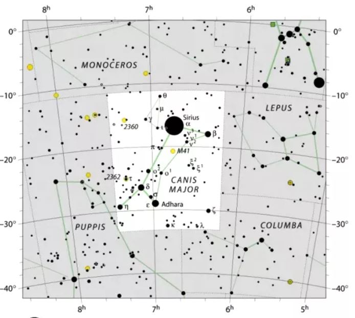 큰개자리는 일반적으로 그리스 신화에서 사냥꾼 오리온을 따라 "큰 개"를 나타내는 것으로 간주됩니다. 별자리는 개가 뒷다리로 서서 토끼를 쫓는 것으로 묘사되며, 이는 별자리 Lepus 로 표시됩니다. 마닐리우스는 큰개자리를 "불타는 얼굴의 개"라고 표현했는데, 그 이유는 개가 하늘에서 가장 밝은 별인 시리우스를 턱 에 안고 있는 것처럼 보이기 때문 입니다. 신화에서 큰개자리는 세상에서 가장 빠른 개인 Laelaps와 관련이 있으며 사냥감은 무엇이든 잡을 수 있습니다. 제우스는 무엇이든 잡을 수 있는 창과 함께 Laelalaps를 Europa에게 선물로 주었습니다. 그 선물은 불행을 가져다 주었습니다. 유로파 자신이 제우스가 선물로 준 창으로 사냥을 나갔던 남편 케팔로스의 손에 의해 최후를 맞았기 때문입니다. Cephalus는 Boeotia(아테네 북쪽의 그리스 속주)에 있는 Thebes로 개를 데려가 그곳에서 문제를 일으키는 여우를 사냥했습니다. Laelalaps와 마찬가지로 여우는 매우 빨랐고 결코 잡히지 않을 운명이었습니다. 개가 여우를 찾아 쫓기 시작하자 경주는 끝이 보이지 않았습니다. 제우스 자신이 마침내 경주를 끝내고 두 동물을 돌로 만들었습니다. 그는 그 개를 큰개자리(Canis Major) 별자리로 밤하늘에 두었습니다.